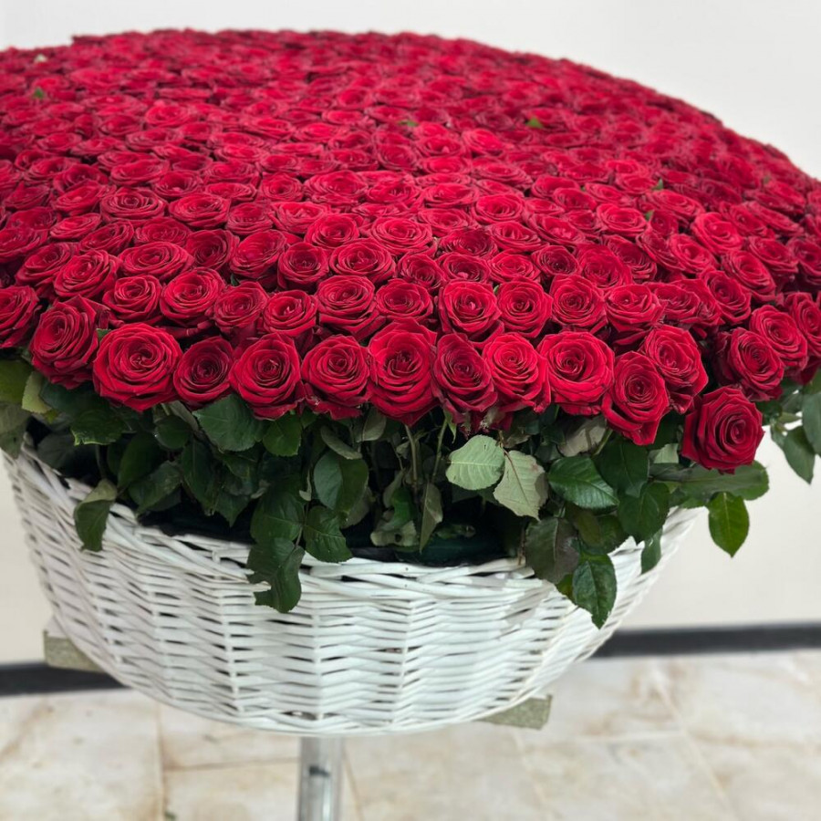 Букет из 501 красной розы в белой корзине в Орске
