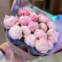 На фото букет из розовых 15 пионов. В составе: пион 15 шт, крафт-бумага 1 шт, . Все цветы свежие и ароматные, букет красиво оформлен и отлично подходит для подарка. Доступна доставка цветов или самовывоз.
